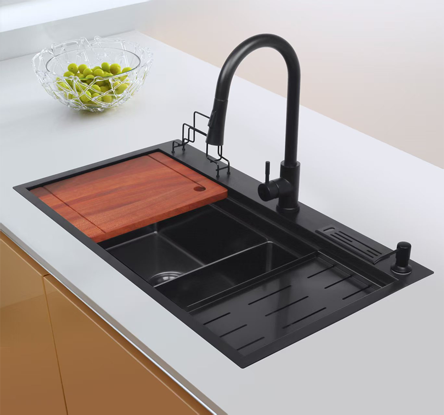 The [No. 1 Kitchen] Smart Sink is more than just an ordinary sink, it integrates multiple functions such as chopping, draining, and stirring. Through clever design, these functions are seamlessly integrated into a single sink, significantly saving kitchen space. For example, the built-in cutting board and drain basket can be easily removed and installed, making washing, cutting, and draining ingredients more efficient. Furthermore, some high-end [No. 1 Kitchen] Smart Sinks are equipped with sensor-operated faucets, allowing you to control water flow with a simple wave of your hand, avoiding contact contamination from traditional faucets and ensuring greater hygiene and safety.